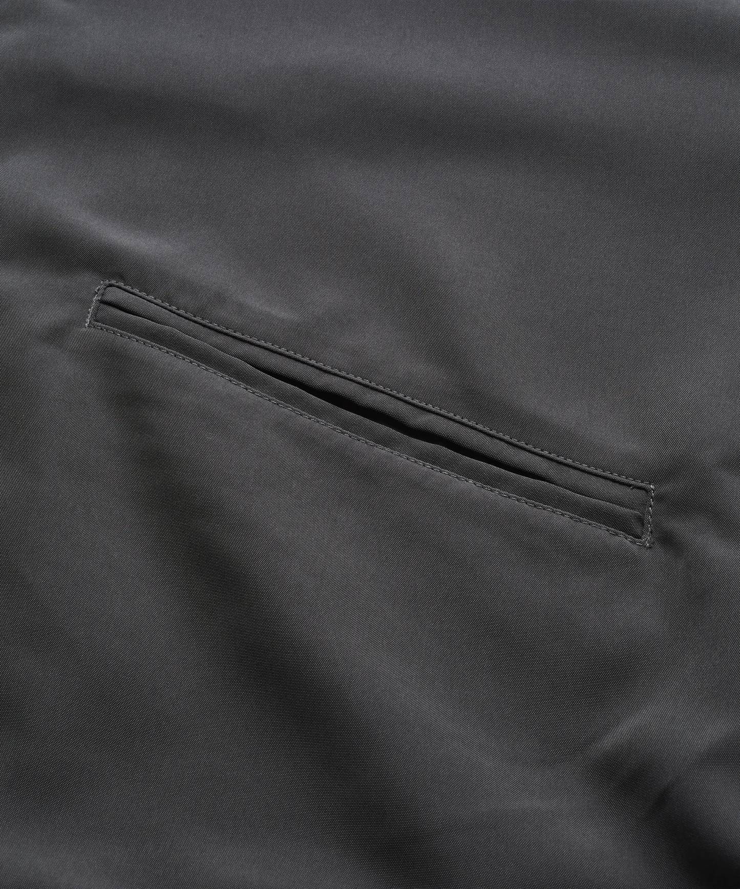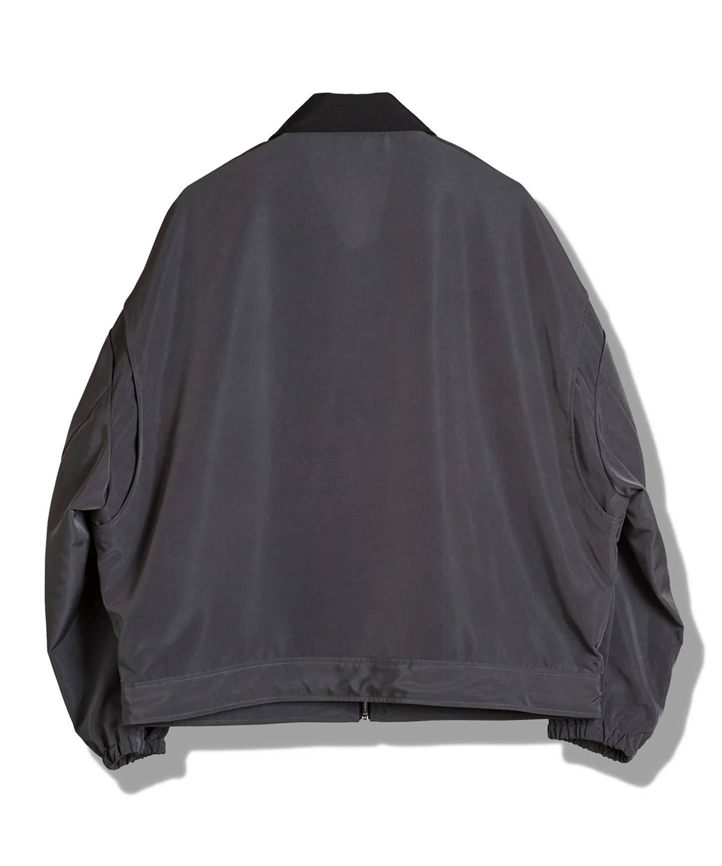 オーバーサイズのブルゾンですが、着丈が短い事と袖口、裾口にゴムを内蔵している事でスッキリとした印象で着用して頂けます。