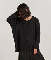 シンプルかつミニマルなデザインで、身幅はかなり広めですが落ち感のある生地なのでスッキリとした印象で着用できます。
