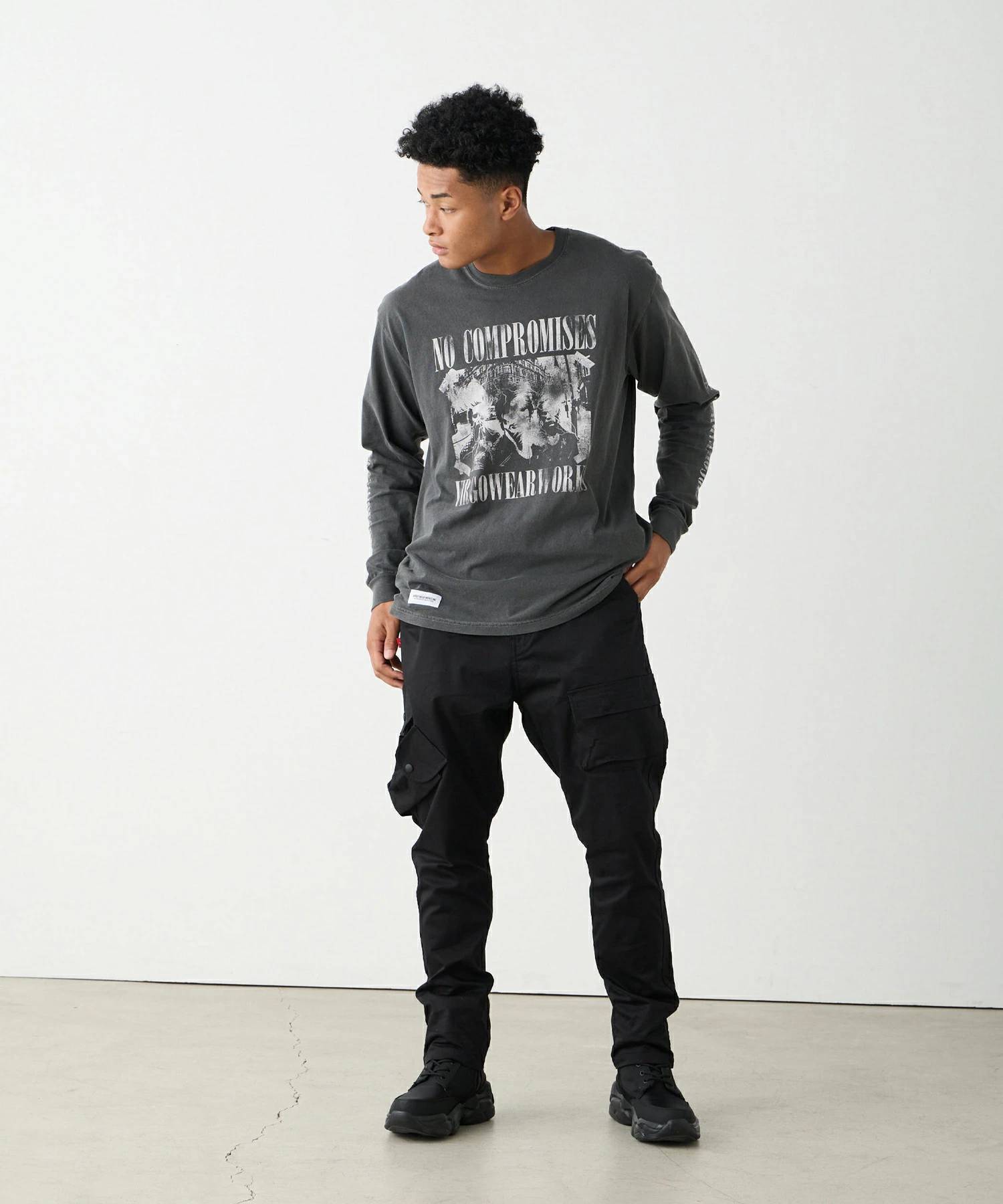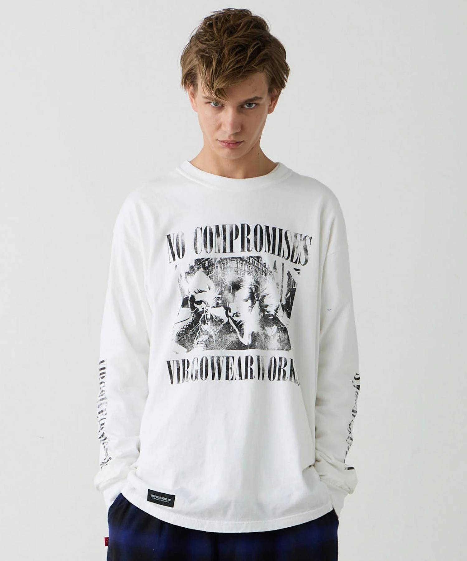 ヴィンテージ風の特殊加工が施されたロングスリーブTシャツ。インパクトあるグラフィックは引っ張ると割れる特殊なクラックプリントを採用し、長年に渡り着用し続けたかのようなリアルな風合いを表現した一着です。