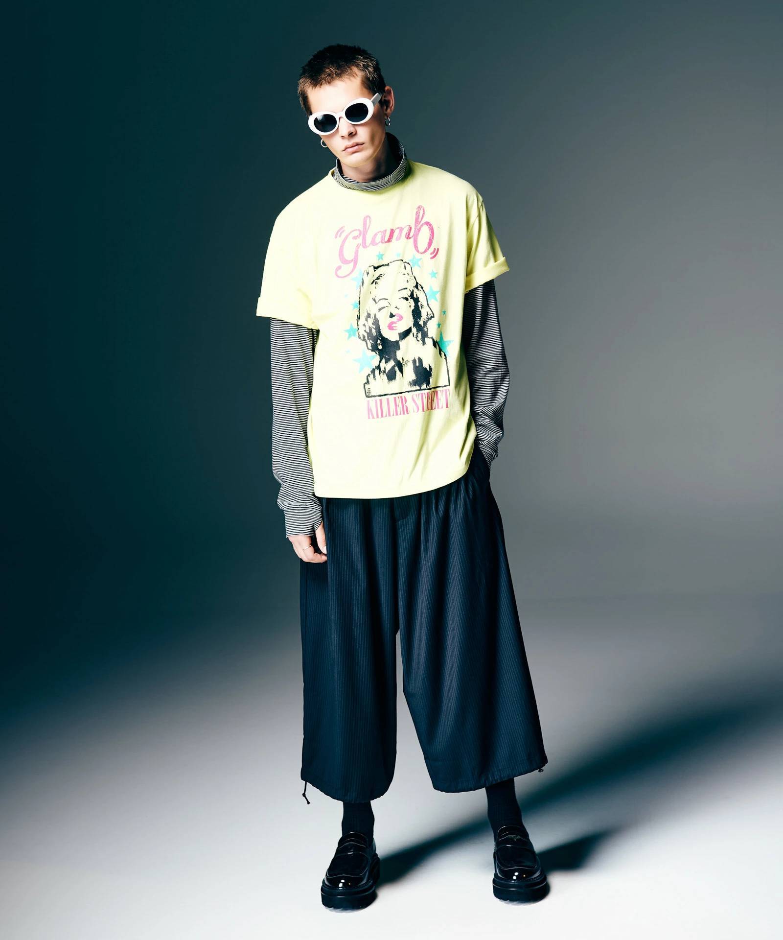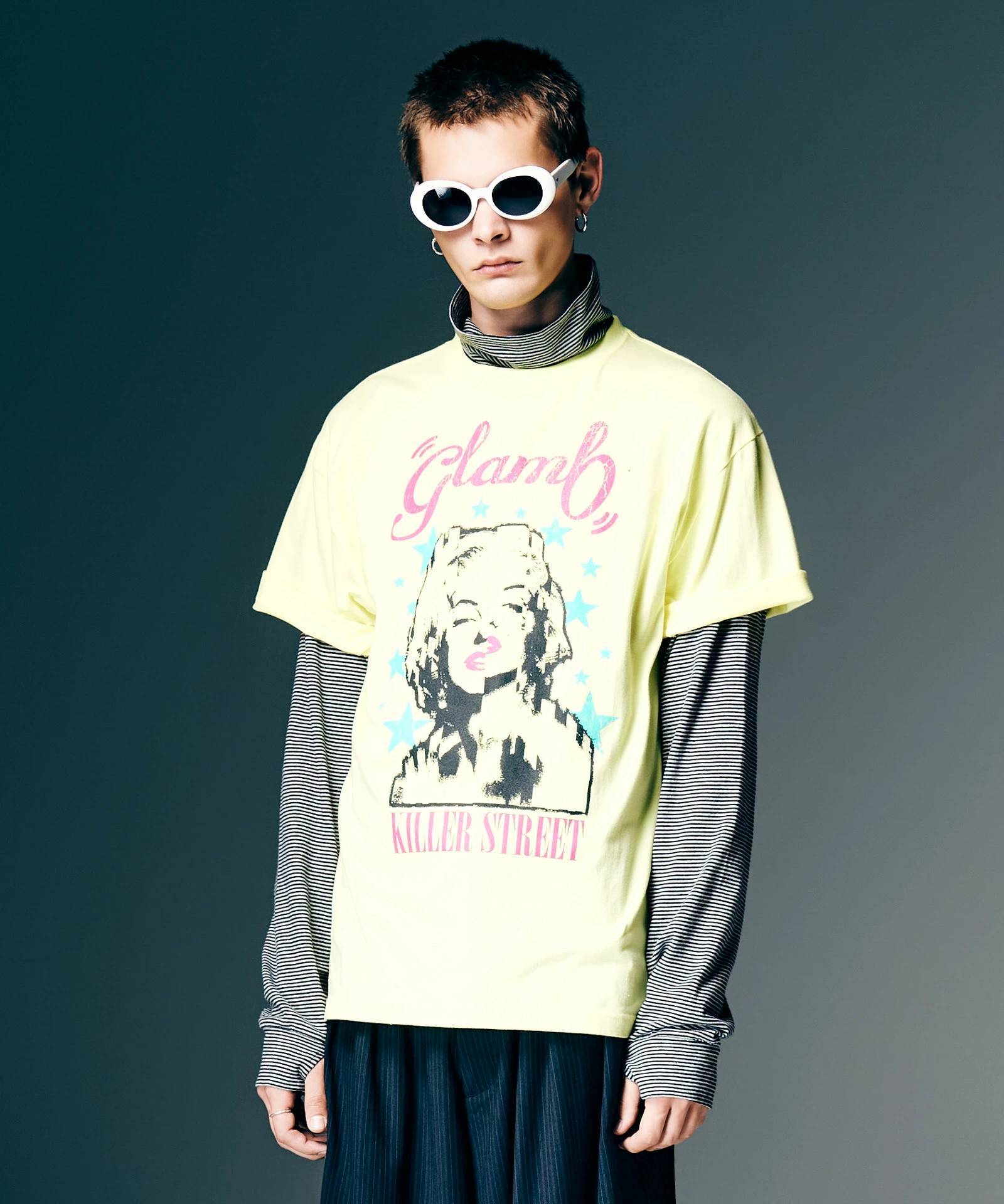ブランドのオフィスが位置する通りの名前を冠し、スーベニアTシャツのような佇まいとなったKiller Street T-Shirt。フロントプリントはシュレッダーをかけたような表現を加えてスキャンダラスなムードに。クラックのエフェクトも掛け合わせたヴィンテージタッチのグラフィックとなっています。テキスタイルにはコットン100%の5.6オンスヘビーウェイト天竺を使用。デイリーユースに絶好の上質な素材感の1枚はルーズなフィッティングに設定しており、リラックスした着用感でお楽しみいただけます。