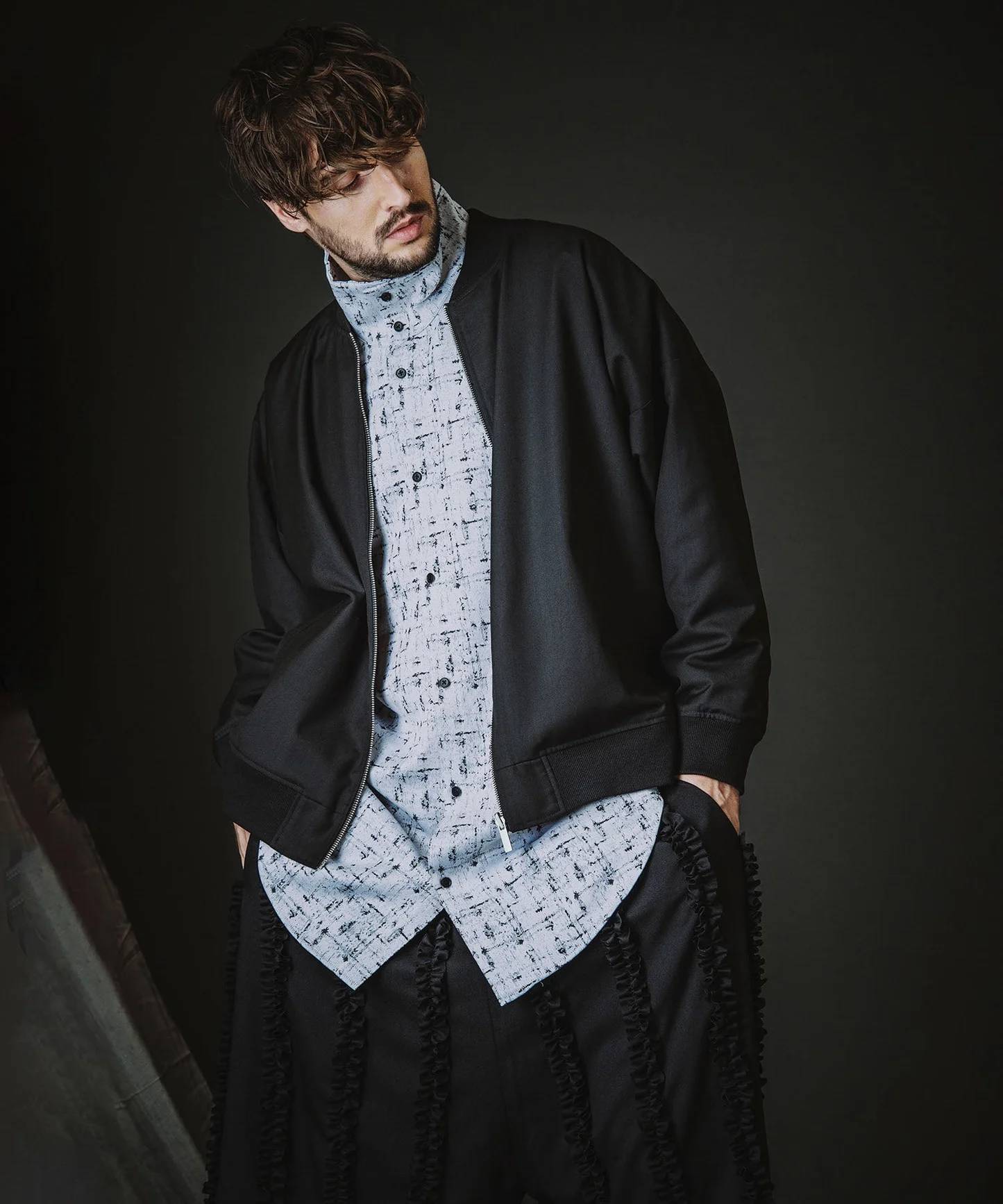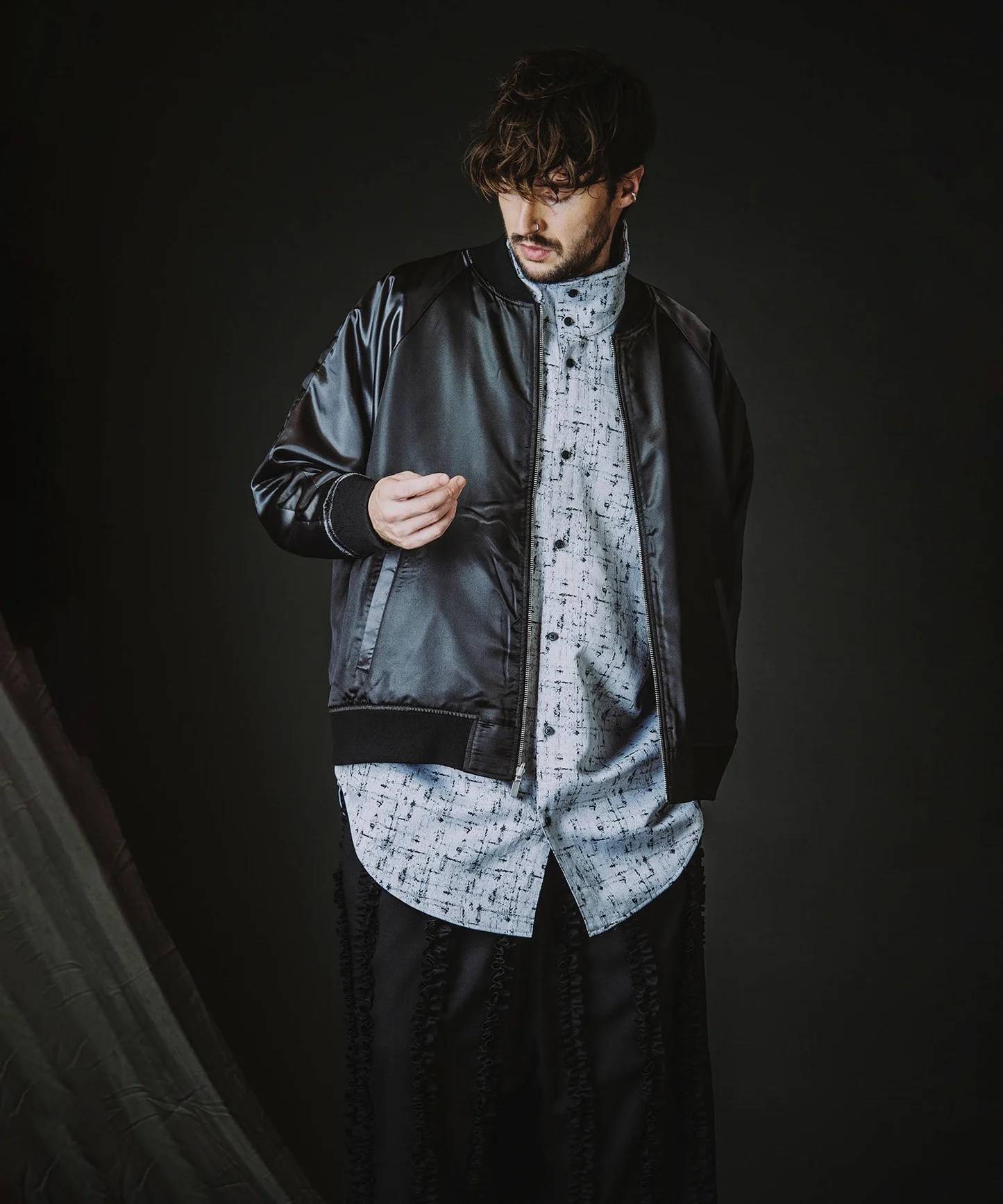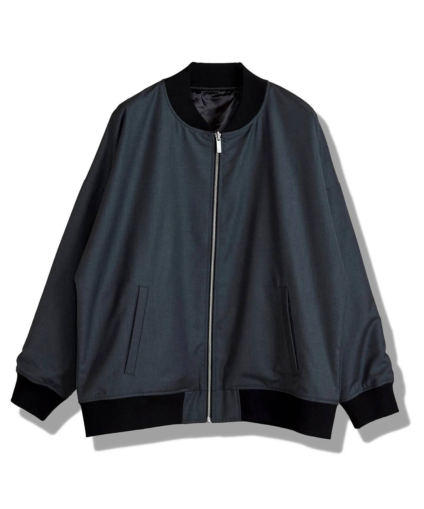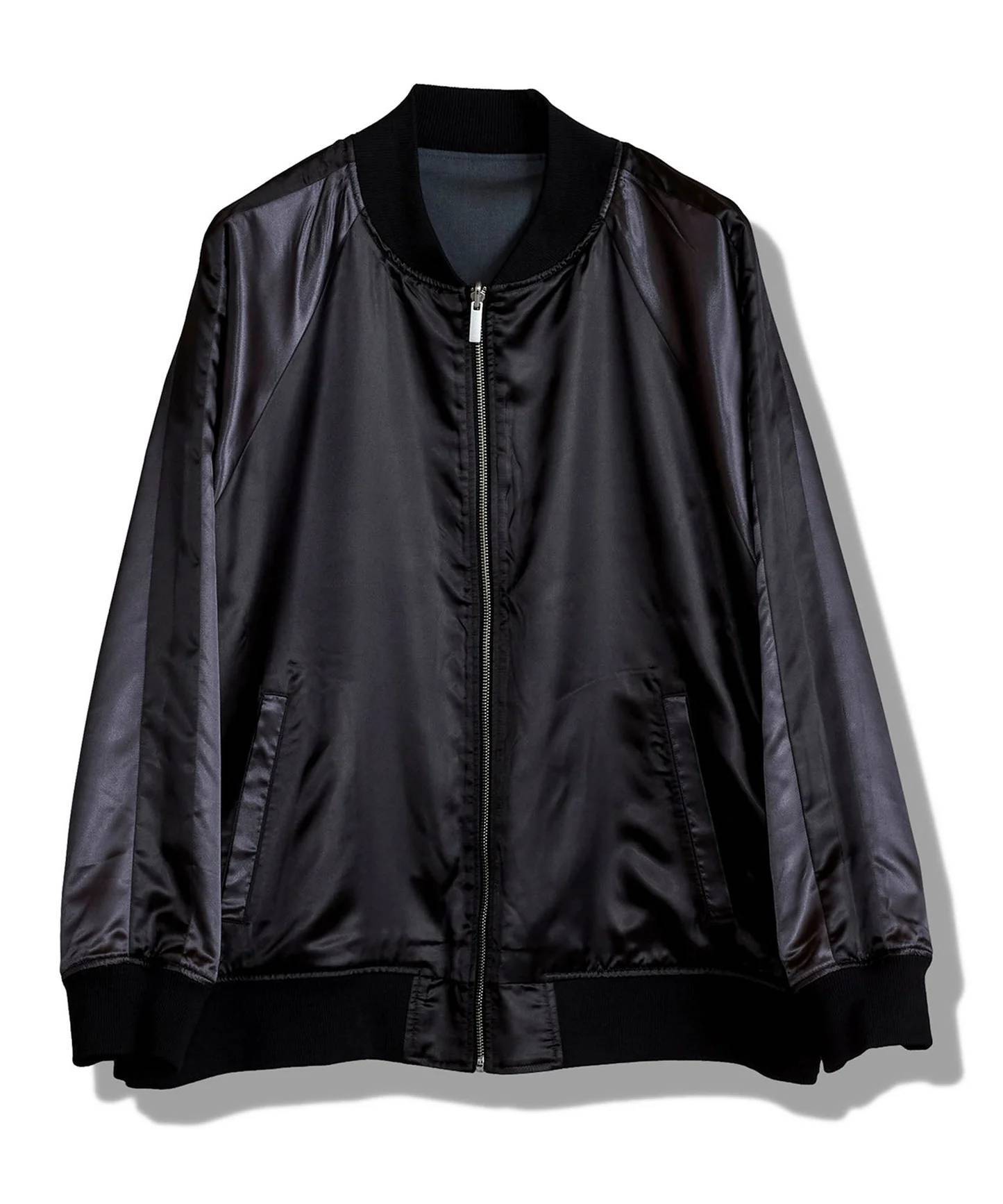 1着で2通りの雰囲気を楽しめるリバーシブルブルゾンです。表面は綺麗めでシンプルなブルゾン。裏面はサテン生地を使用したスカジャン風のデザインに。