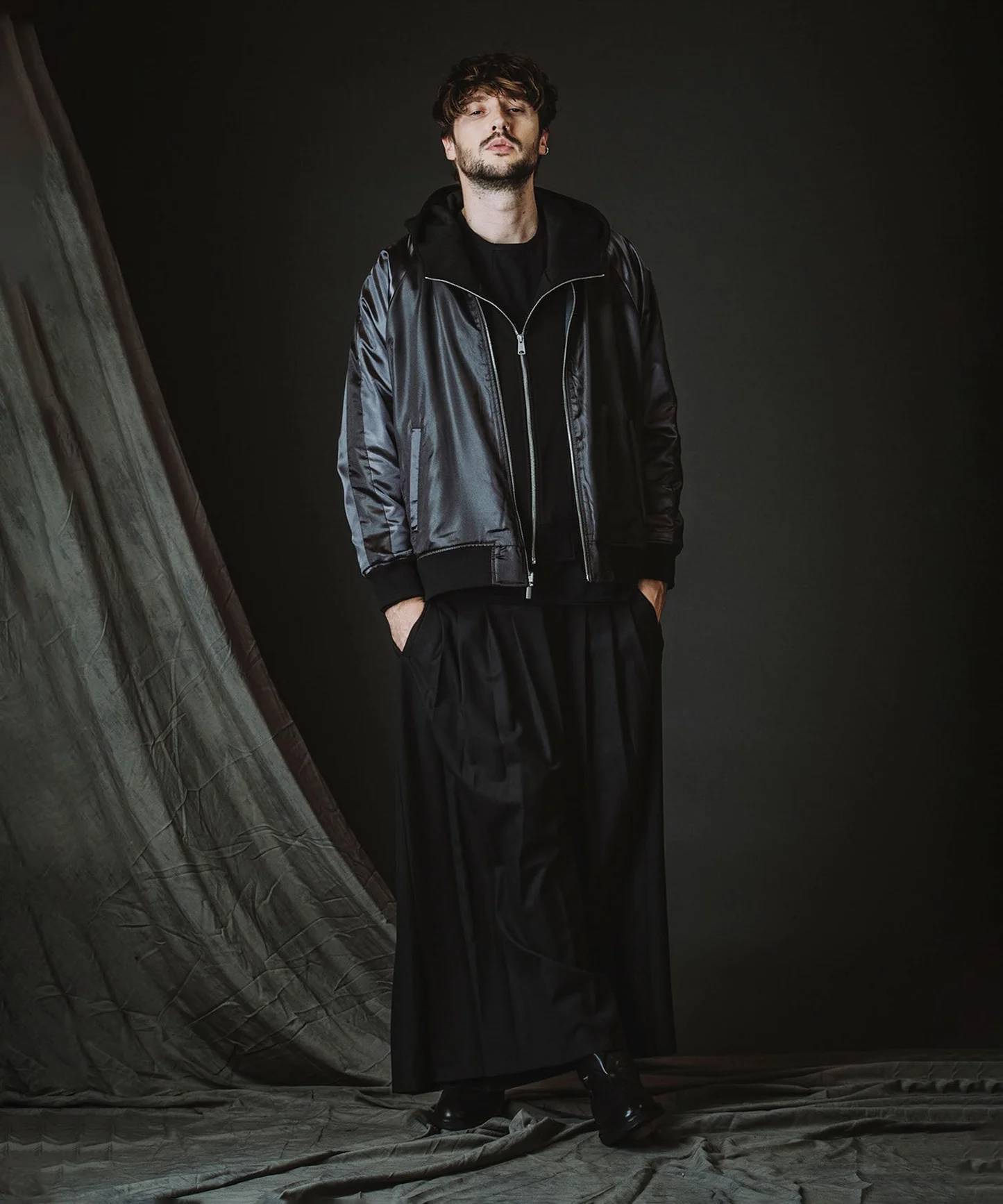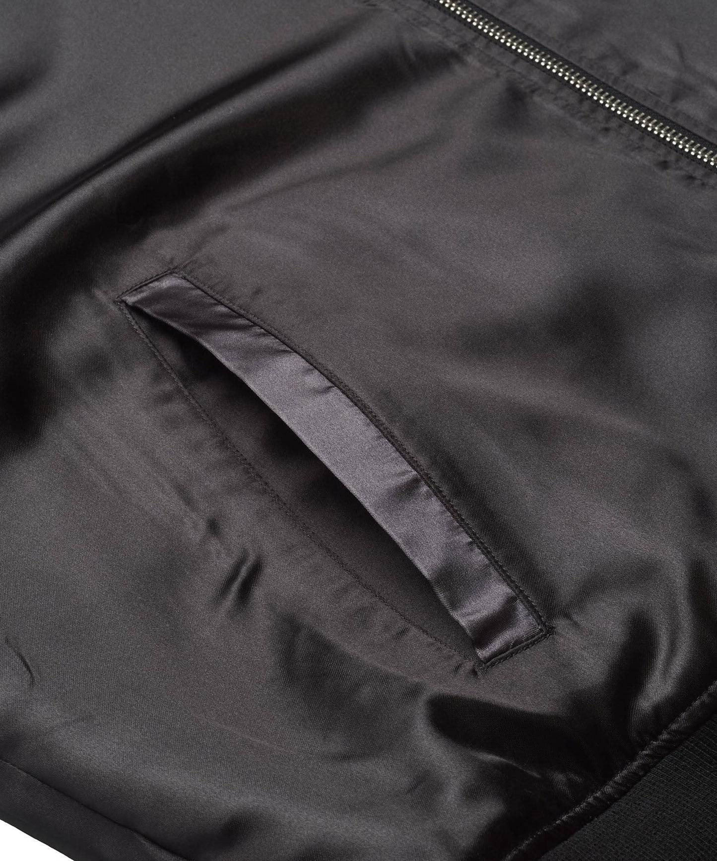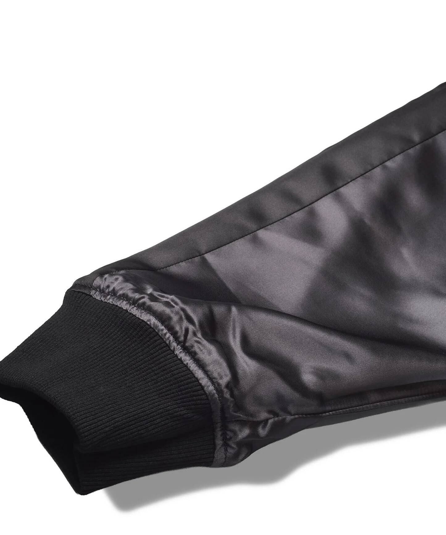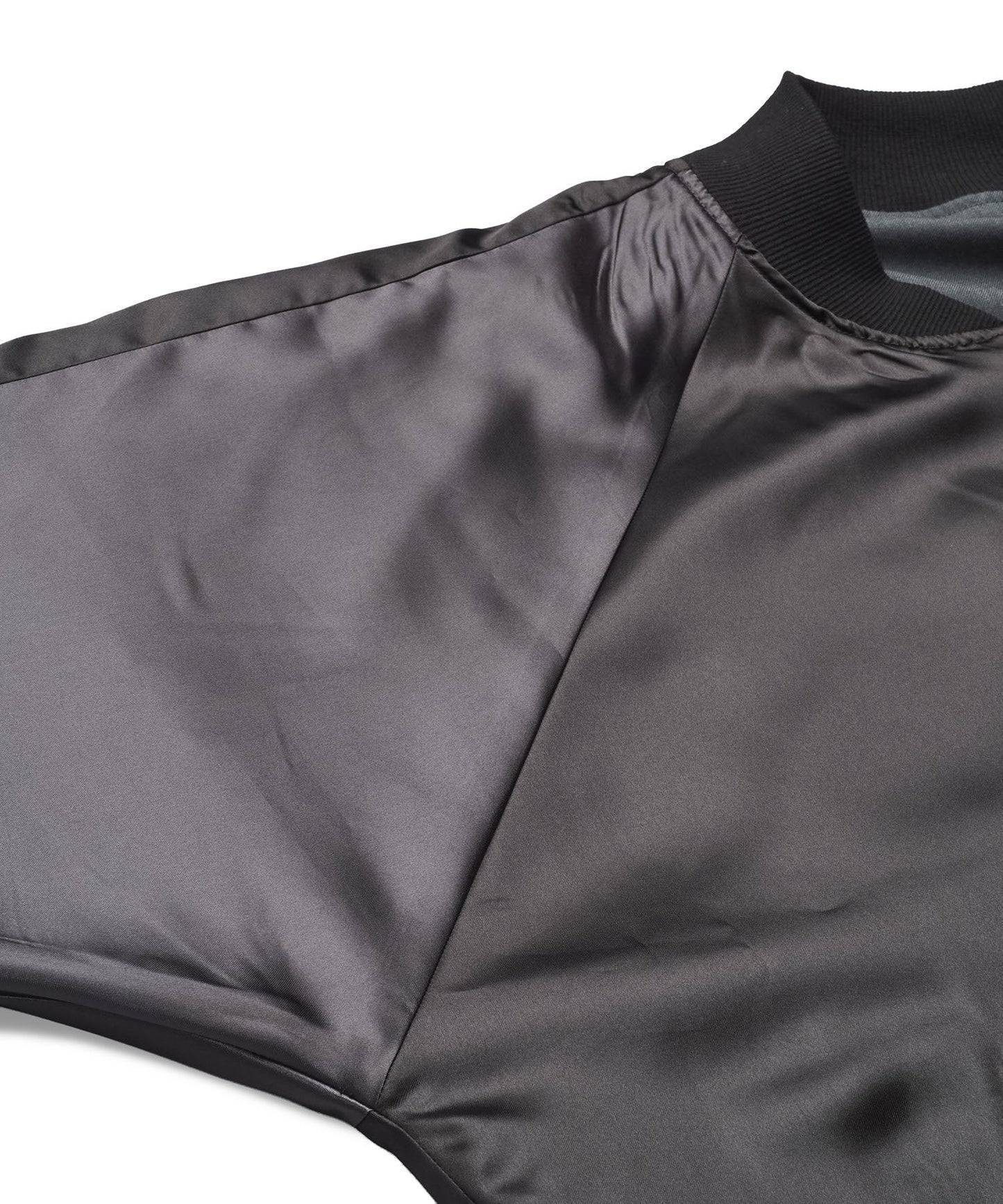 グレーもブラックも裏面はサテン生地のスカジャン風のデザインになります。