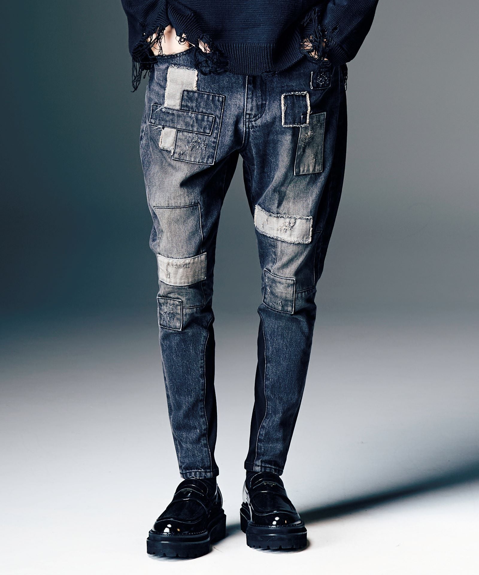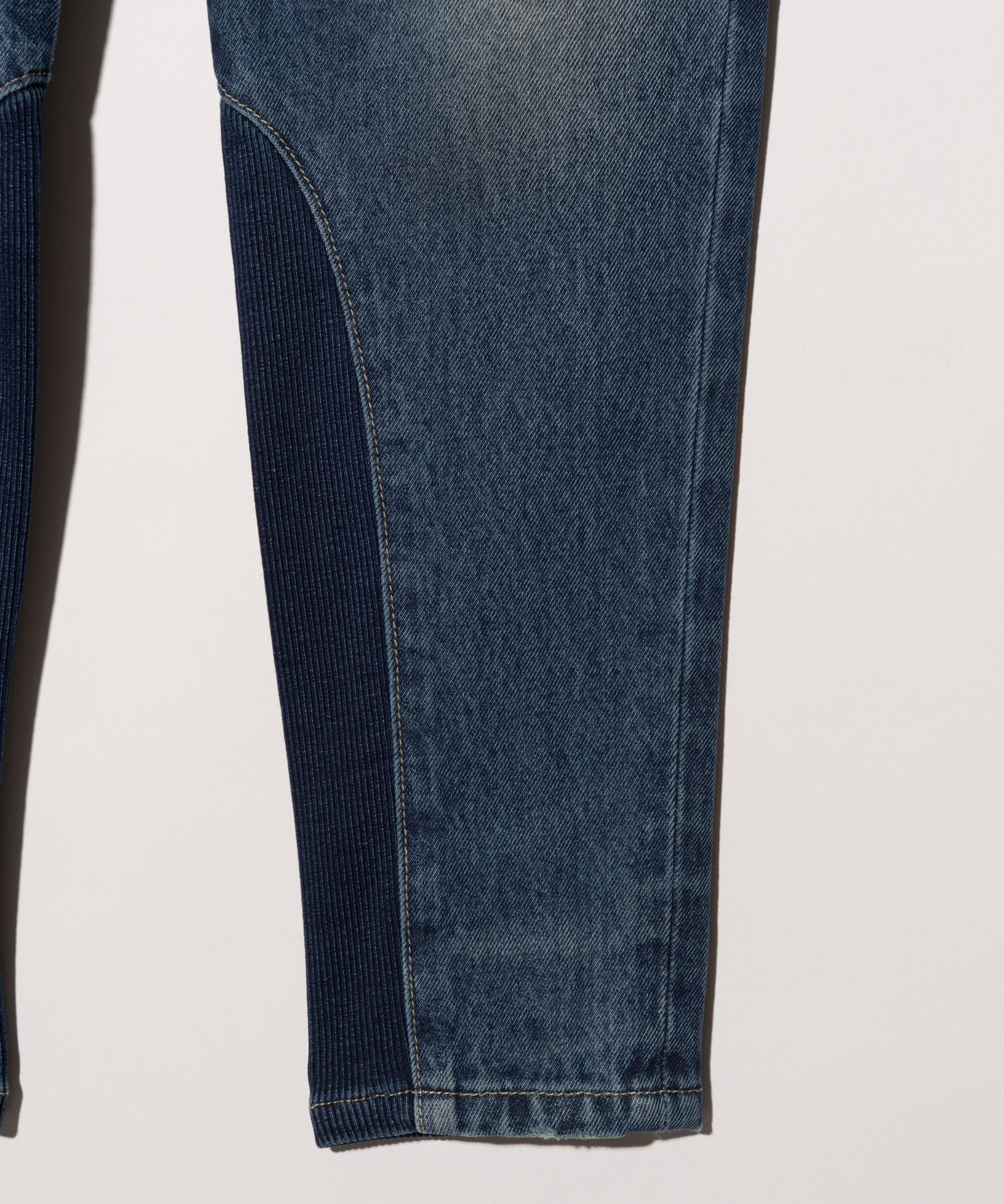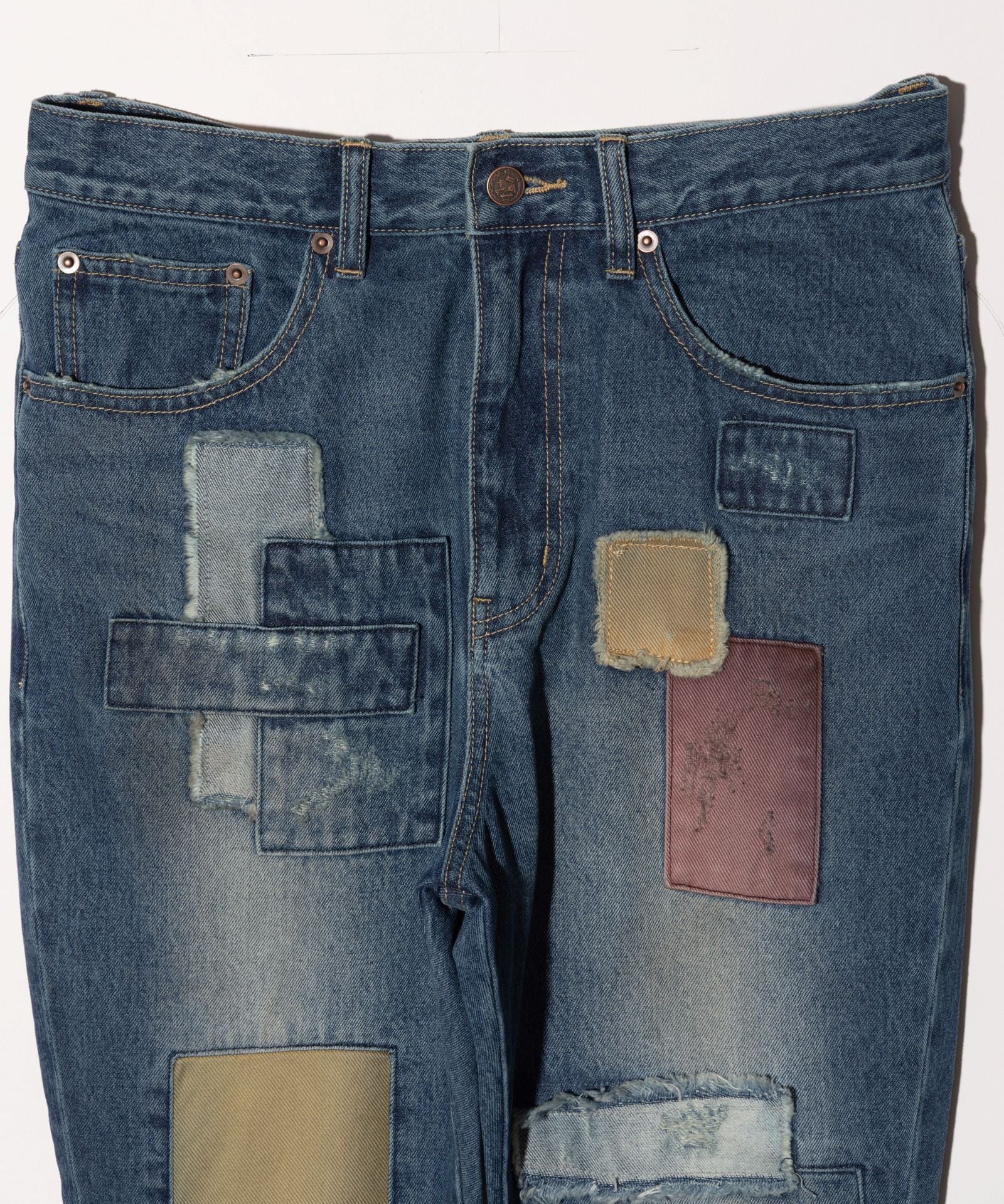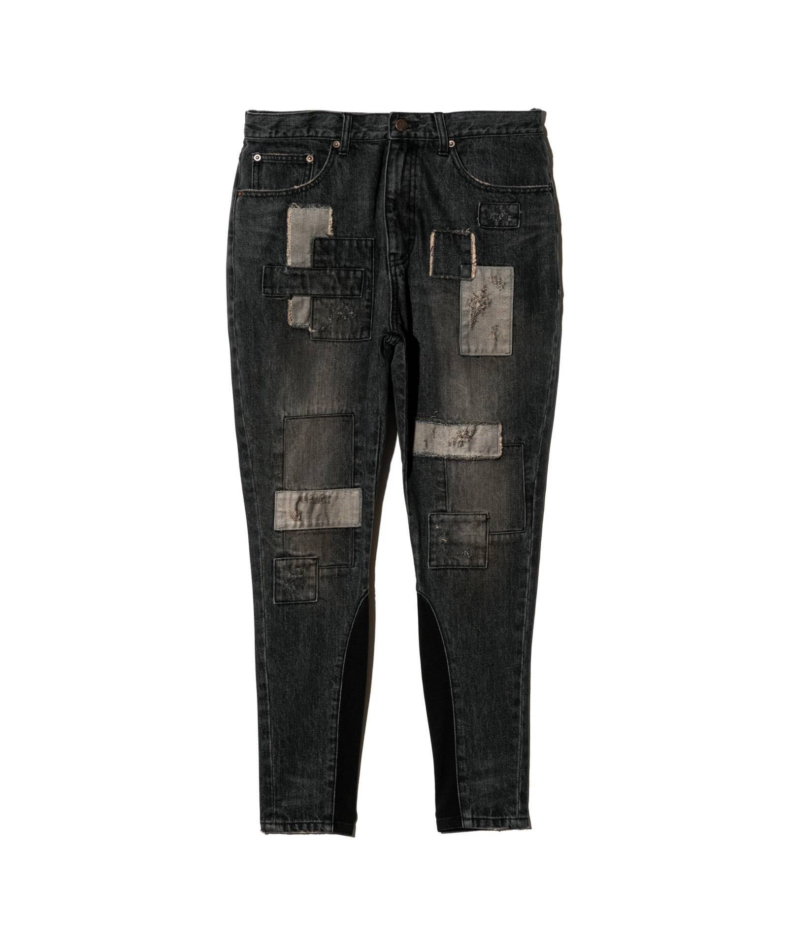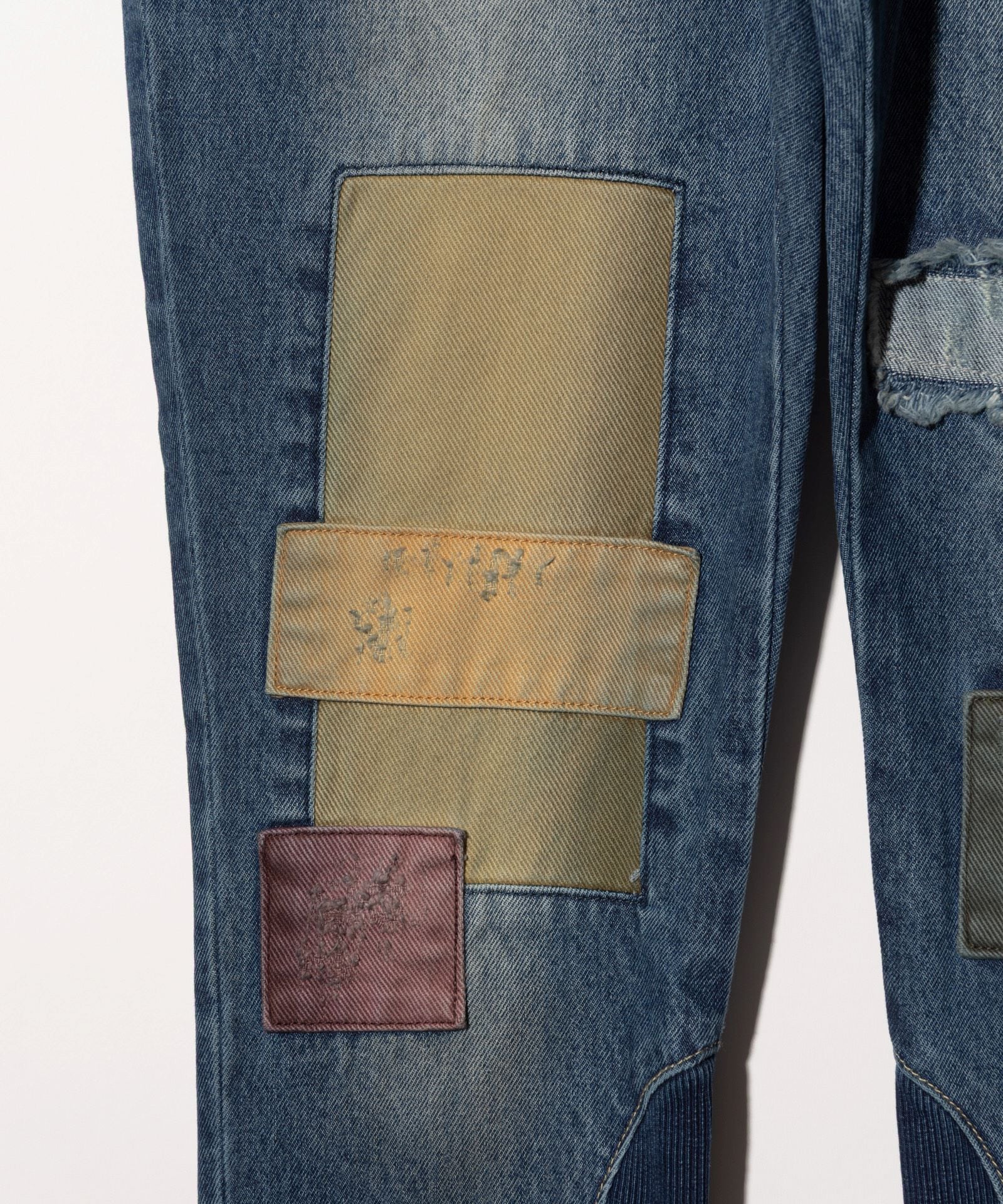 シルエットはゆとりある腰回りから裾にかけてスキニーライクに変化するPoly Pantsのサルエルテーパード。10年以上にわたってブランドのデニムラインで人気を博し続ける定番シルエットとなっています。そこにあしらわれたのは重層的なパッチワークデザインとなる"Unplugged"。 身生地の表裏双方から当て布を施した三層のボディを縫製した後、職人が手作業によってヒゲやハチノス、アタリの削りを加えた後に洗いをかけることで迫真の表情を生み出しました。カラーバリエーションはベーシックなBlackとIndigoに加え、配色の当て布が縫い付けられたMultiの3色をラインナップ。集大成の存在感を持った仕上がりは初見の方のみならず、Poly DenimやUnplugged Denimをすでにお持ちの方にも新たな魅力を感じていただけるでしょう。