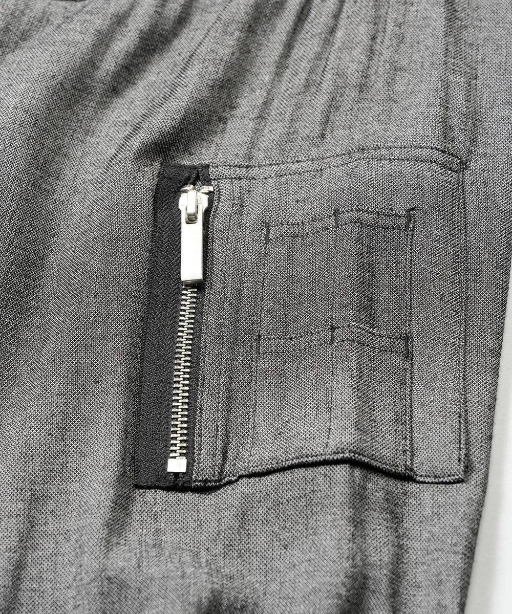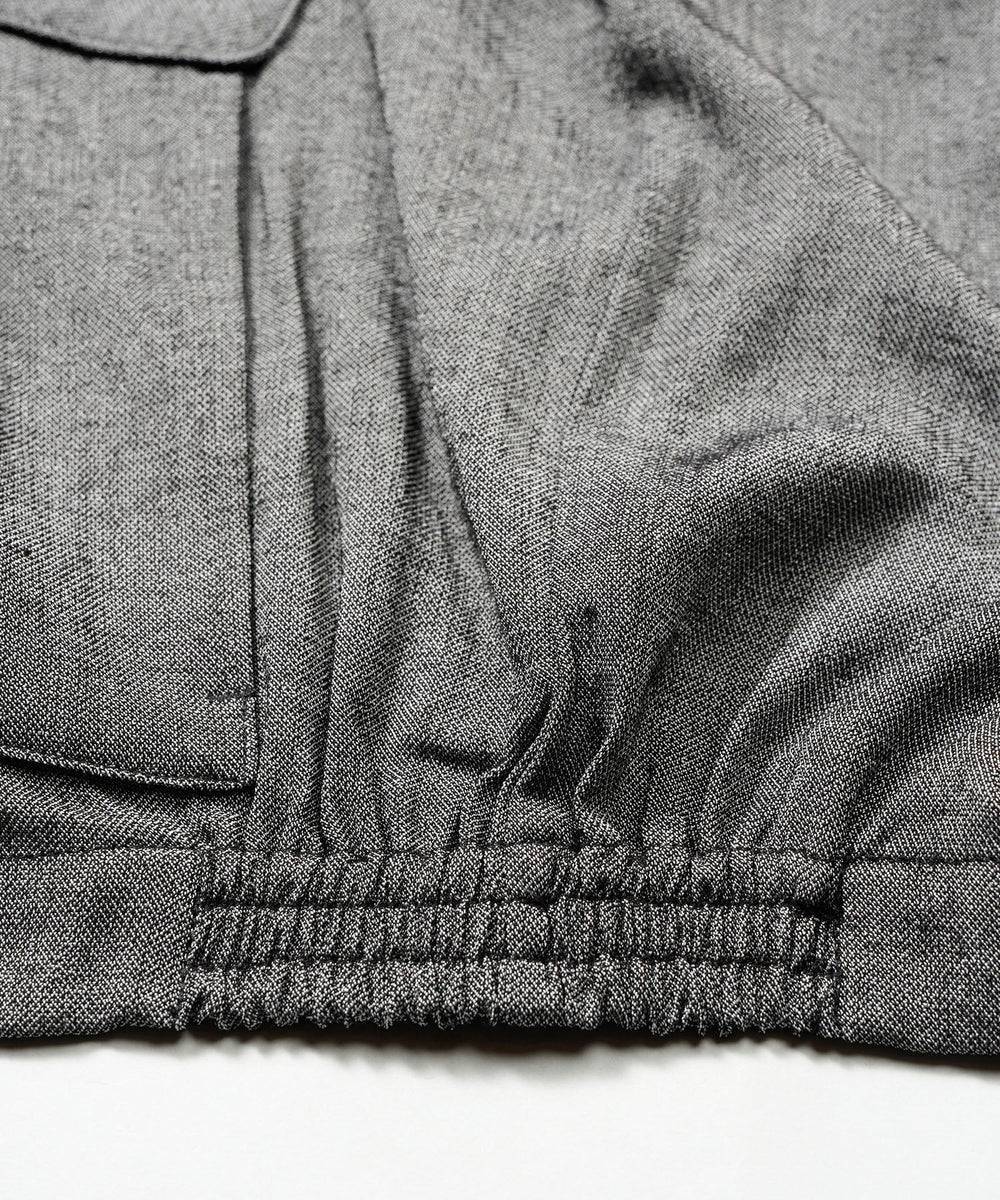 裾は両脇のみ平ゴムを内蔵することで、やや丸みのあるシルエットを構築