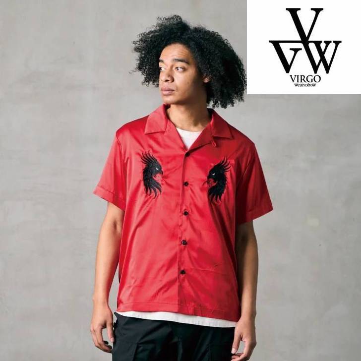 VIRGOwearworks ヴァルゴウェアワークス メンズ 半袖シャツ LUXE BOWLING SATIN SHIRT ホワイト レッド ブラック VG-SH-277
